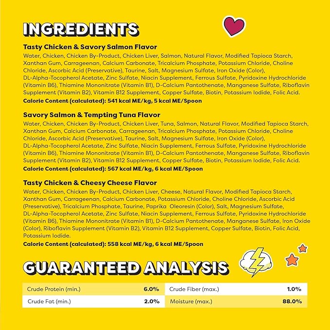 - Irresistible Cat Treats: Made with real chicken, tuna, salmon or cheese so your favorite feline will enjoy two irresistible flavors in one lickable cat puree spoon