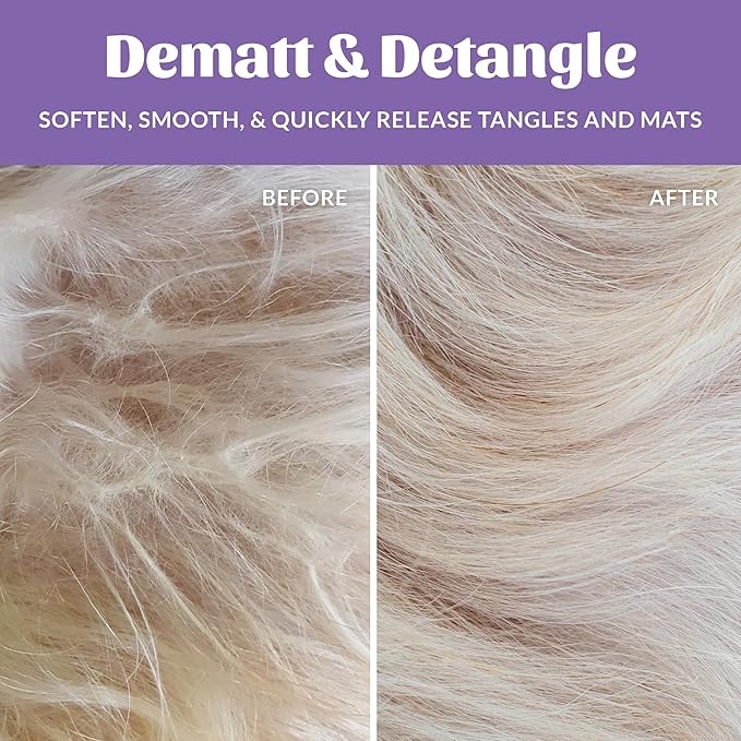 - Hydrating and Nourishing - Infused with avocado oil and conditioning Omega-3s, this pet hair detangler hydrates the skin and softens the coat for a more brushable, tangle-free pet.