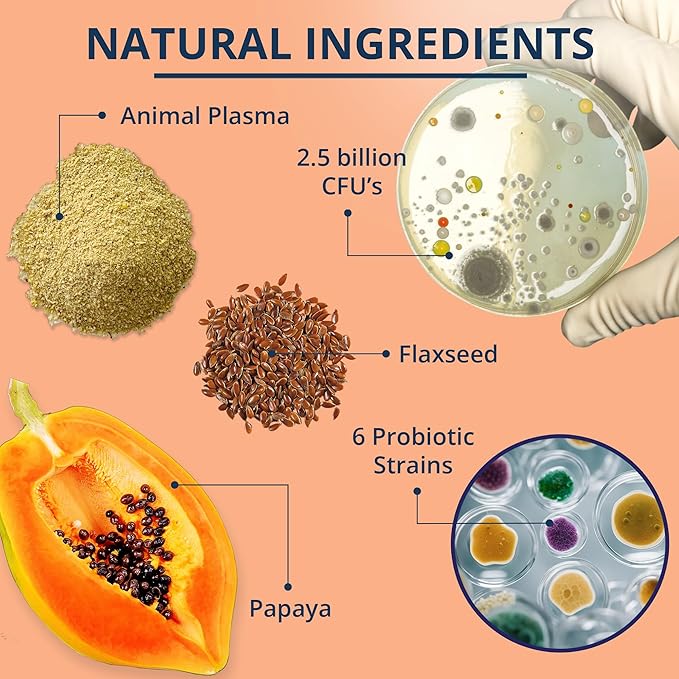 - 🌿 PROBIOTICS & FIBER BLEND: Combines 6 probiotic strains, pumpkin, and flaxseed to deliver 2.5 billion CFUs for optimal gut health.