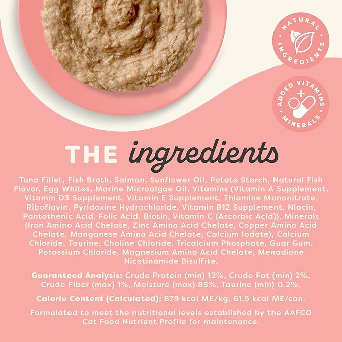 Applaws Vitality Wet Cat Food Paté, Natural Canned Cat Food, Wet Food for Cats with Added Vitamins and Minerals, Grain Free, Carrageenan Free, Tuna Fillet and Salmon Recipe (24 Count, 2.47 oz Cans)