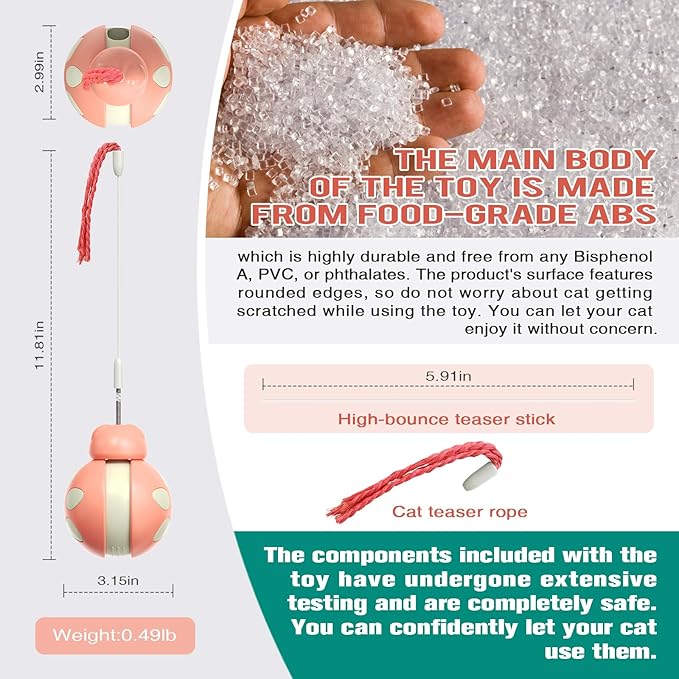 - [Safe Material and Design]: The main body is made of food-grade ABS, free from bisphenol A, PVC, and phthalates. The surface of the product adopts a rounded edge design to ensure safety during play. Durable and reliable, it is a worry-free choice for your feline companion.