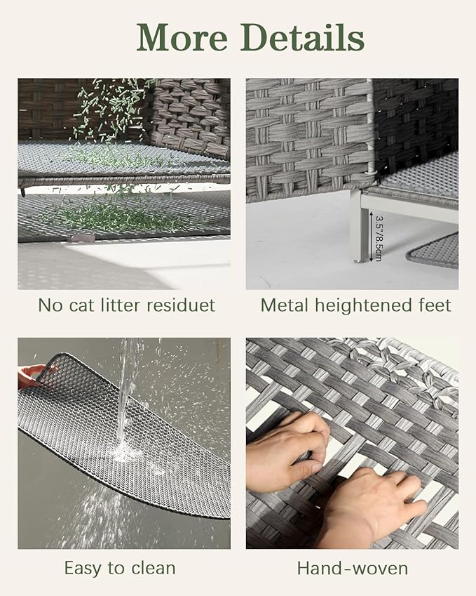 - Hidden Cat Litter Box: Hidden cat litter box furniture features quality rattan, enclosed cat litter boxes furniture elegant appearance not only hides cat litter box, but also makes cat litter enclosure furniture a decoration for any room