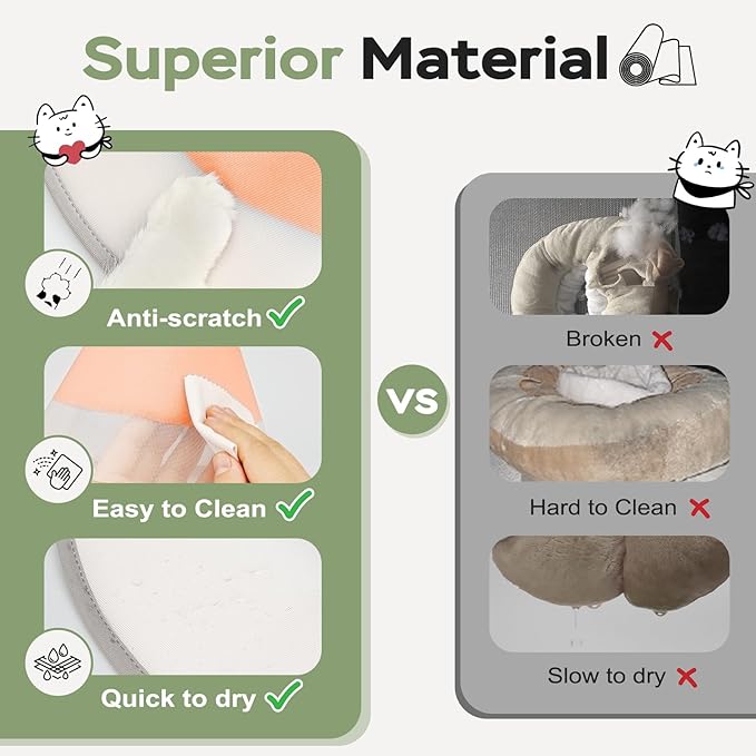 Cozy beds, cat condos, and hideaways for peaceful rest.