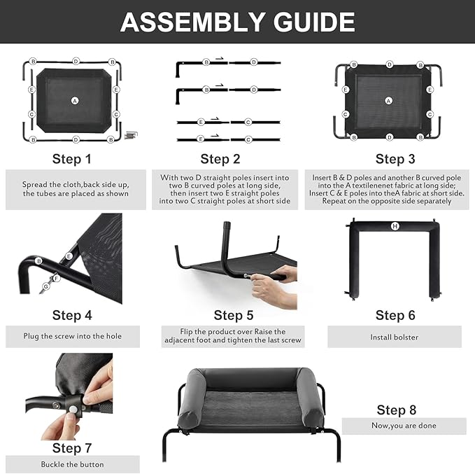 - 【DOG BED EASY CARE】: This cooling elevated dog bed is super easy to clean. Pet hair, vomit, and dust can be quickly wiped away, or you can wash the mesh with tap water, a hose, or a damp towel. For a deeper clean, use mild soap or natural cleaning agents. No more worries about pet odors, dirt, or excessive hair. (Note: Wash the U-shaped pillow separately with pet shampoo.)