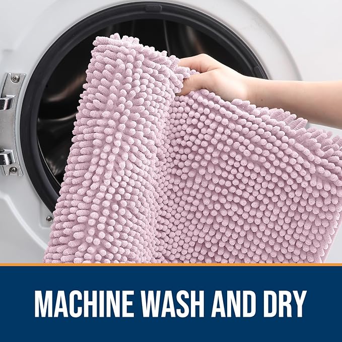 OLANLY Dog Door Mat for Muddy Paws 47x20, Absorbs Moisture and Dirt, Absorbent Non-Slip Washable Doormat, Quick Dry Chenille Mud Mat for Dogs, Entry Indoor Entryway Carpet for Inside Floor, Dusty Rose
