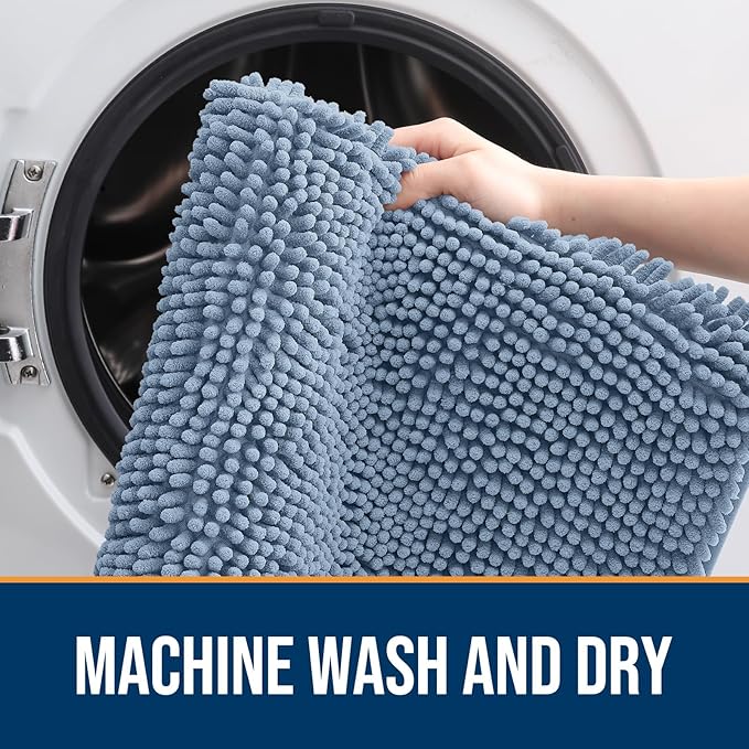 OLANLY Dog Door Mat for Muddy Paws 47x17, Absorbs Moisture and Dirt, Absorbent Non-Slip Washable Doormat, Quick Dry Chenille Mud Mat for Dogs, Entry Indoor Entryway Carpet for Inside Floor, Airy Blue