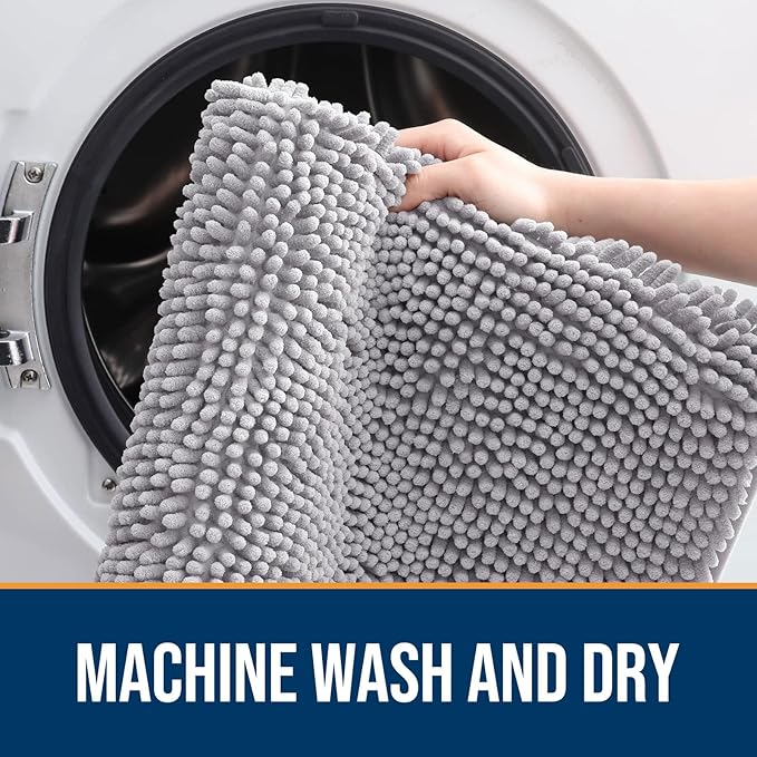 - [LOW PROFILE AND EASY CARE] OLANLY's Chenille Dog Door Mat boasts a slim 1-inch profile, offering a sleek and streamlined appearance. The thoughtful design ensures your doors won't get stuck, and the mat stays securely in place. Cleaning is a breeze – simply shake off any dirt or debris, or toss it in the washing machine for a deeper clean. It dries quickly, so you can be sure it's ready to use again in no time.