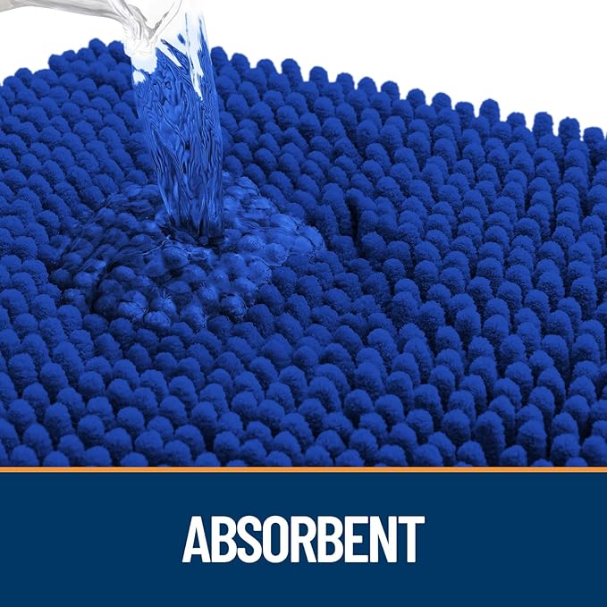 OLANLY Dog Door Mat for Muddy Paws 40x24, Absorbs Moisture and Dirt, Absorbent Non-Slip Washable Doormat, Quick Dry Chenille Mud Mat for Dogs, Entry Indoor Entryway Carpet for Inside Floor, Royal Blue