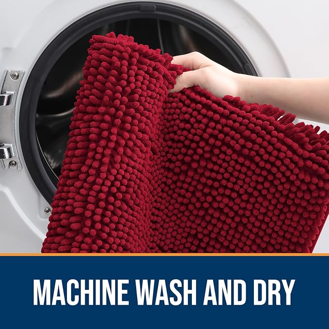 OLANLY Dog Door Mat for Muddy Paws 30x17, Absorbs Moisture and Dirt, Absorbent Non-Slip Washable Doormat, Quick Dry Chenille Mud Mat for Dogs, Entry Indoor Entryway Carpet for Inside Floor, Red