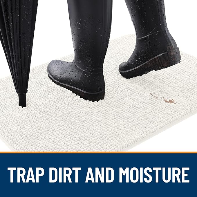 OLANLY Dog Door Mat for Muddy Paws 47x24, Absorbs Moisture and Dirt, Absorbent Non-Slip Washable Doormat, Quick Dry Chenille Mud Mat for Dogs, Entry Indoor Entryway Carpet for Inside Floor, Ivory
