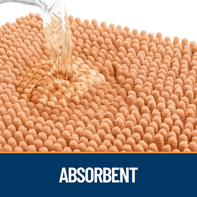 OLANLY Dog Door Mat for Muddy Paws 30x17, Absorbs Moisture and Dirt, Absorbent Non-Slip Washable Doormat, Quick Dry Chenille Mud Mat for Dogs, Entry Indoor Entryway Carpet for Inside Floor, Orange