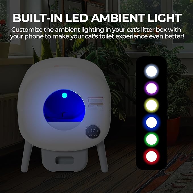 Self Cleaning Cat Litter Box: Extra Large Automatic Litter Box for Multiple Cats, Odor-Free, App-Controlled, Ambient Light Waste Disposal
