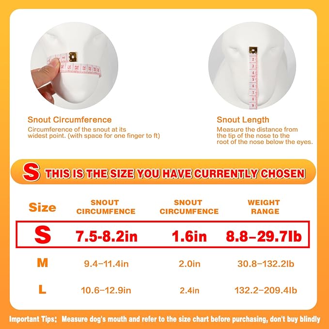 - 【Size Option: S (Circumference: 7.5''-8.2'' in)】Size S is suitable for small dogs, such as Beagle and Corgi etc. Please make sure to measure the dog's snout before purchase and refer to the size chart to choose the right size. If you have any questions about product quality or size, please feel free to contact us.