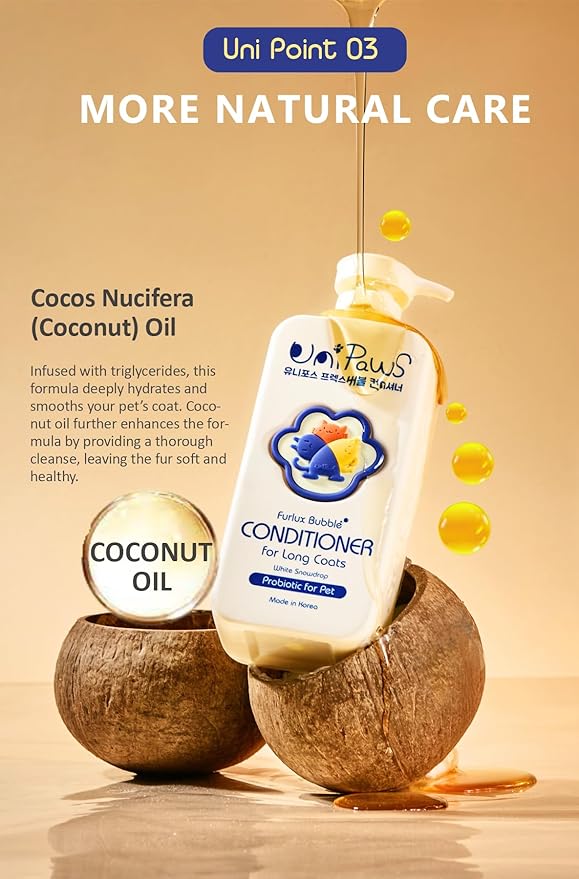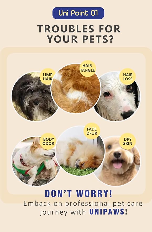 Unipaws Biotin Shampoo & Conditioner Set for Long-Haired Dog โ Detangling, Deshedding, Thicking Hair for Senzitive Skin Healthy, Lustrous Fur โ Medicated & EWG Green, Made in Korea, 2ร16.9 Fl Oz