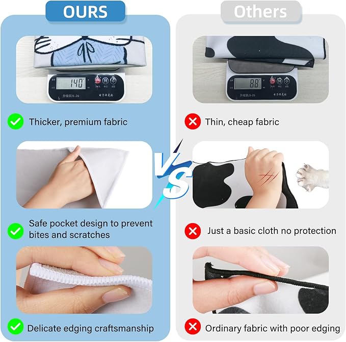 - Anti-Bite/Scratch Design: Special hand pocket designed allows for safe nail trimming, teeth brushing, feeding, ear cleaning, administering injections, and more, protecting you from bites and scratches.