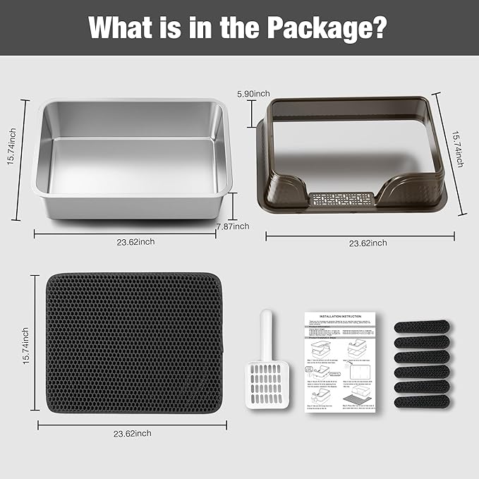 - Extra Extra Large Capacity: This cat litter box features an extra extra-large interior space, suitable for medium to large cats (23.6L'' × 15.7W'' × 13.8H''/60 × 40 × 35cm), ensuring 2 medium or 1 big cats have enough to move and can use it for long periods without frequent litter changes. Our fenced stainless steel cat litter box offers large room for your cat to move around comfortably.