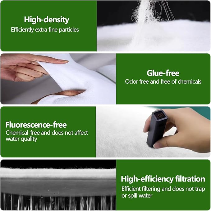 - Ideal For Reducing Cloudiness:Made from micro-fine polyester fibers, this aquarium filter media removes extra fine particles, keeping your tank clean and fresh. Perfect for cloudy water or after tank maintenance, it restores clarity in both freshwater and saltwater environments