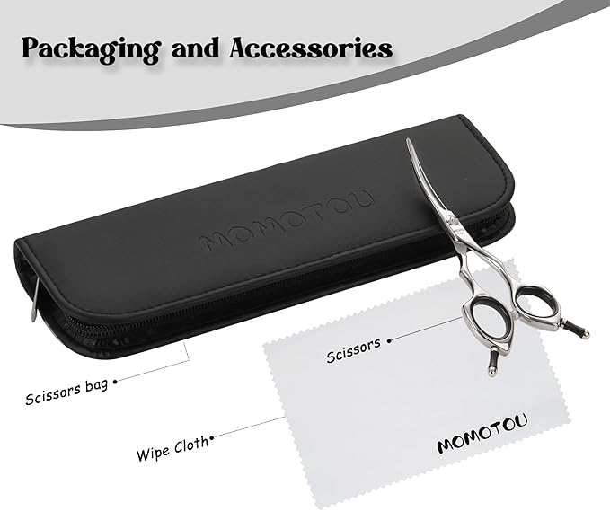 - 【User-Friendly】—Ideal for DIY pet lovers and pros, Momotou’s curved scissors for dog grooming feature intuitive handling and smooth operation. Their compact 5-inch size and lightweight build make intricate trims easy, even for beginners.