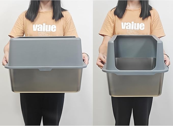 - Style : Stainless Steel Cat Litter Box with Lid