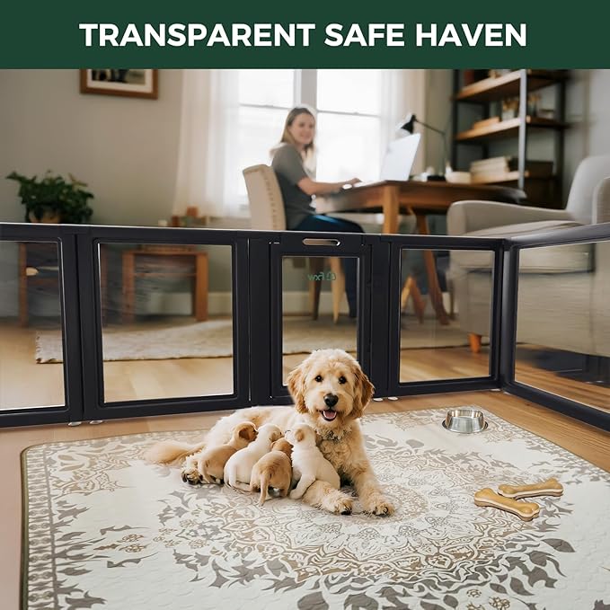 - Escape-Free, Safe Play: Transparent and seamless panels create a secure playpen to keep energetic dogs safely inside, preventing them from climbing out or getting their paws stuck in gaps.