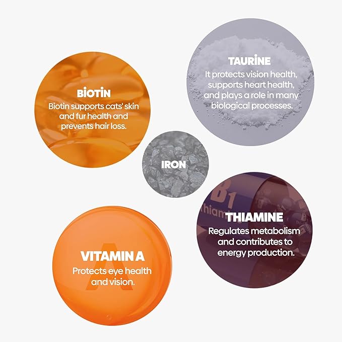 - Promotes Eye Health: Rich in vitamins A, C, and E to protect and support your cat’s eye health.