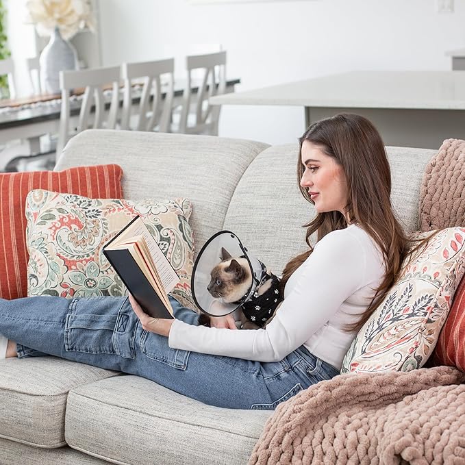 - 🛏️ Soft, Lightweight & Cat-Approved Comfort Breathable fabric feels like pajamas for cats. Lighter than most pet cones for cats or cat donut collars, it's gentle enough for long naps and active play without restricting movement. Stretchable and hypoalergenic