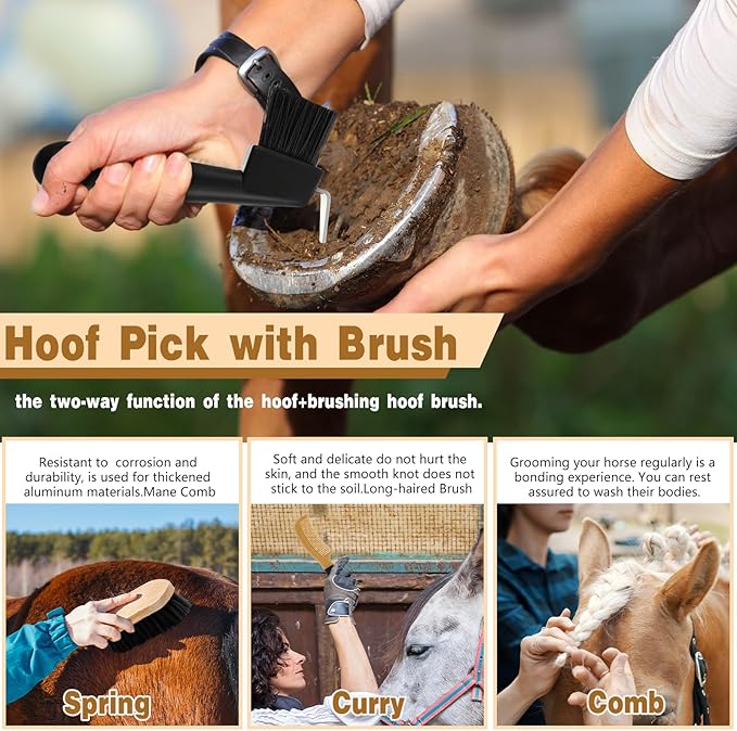- Practical Gift: these horse grooming tools are suitable for horse groomers, equestrian enthusiasts, beginner riders, stable owners; This horse brush set is a great addition to rider's tack room, or as a gift for that loving horse in your home; You can give this horse grooming kit as a gift to your friends especially those are stable owners, and they will be happy to receive this thoughtful gift
