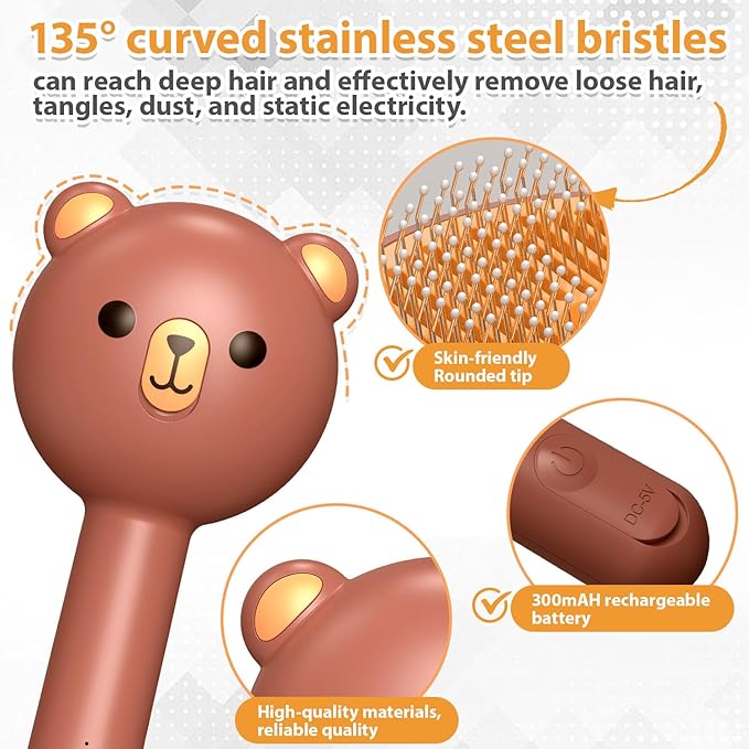 - 【135° Curved Steel Needles & Skin-friendly Rounded Tip】- Cat steam brush for shedding uses 135° curved stainless steel bristles, which can reach the deep hair of long-haired or short-haired cats, effectively removing loose hair, tangles, static electricity. The end of the steel needle is wrapped with rubber, which can protect the skin and provide gentle massage. The humanized design allows pets to deeply relax every time they are groomed, and the furry friends will love it more and more.