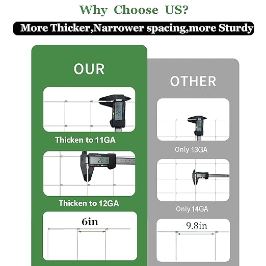 - Scientific Design -The bottom and upper have different opening mesh sizes.The Openings of fencing mesh get smaller toward the bottom to prevent rabbits, dogs, cats, chickens, foxes and other small animals to enter your farm,field or Garden.