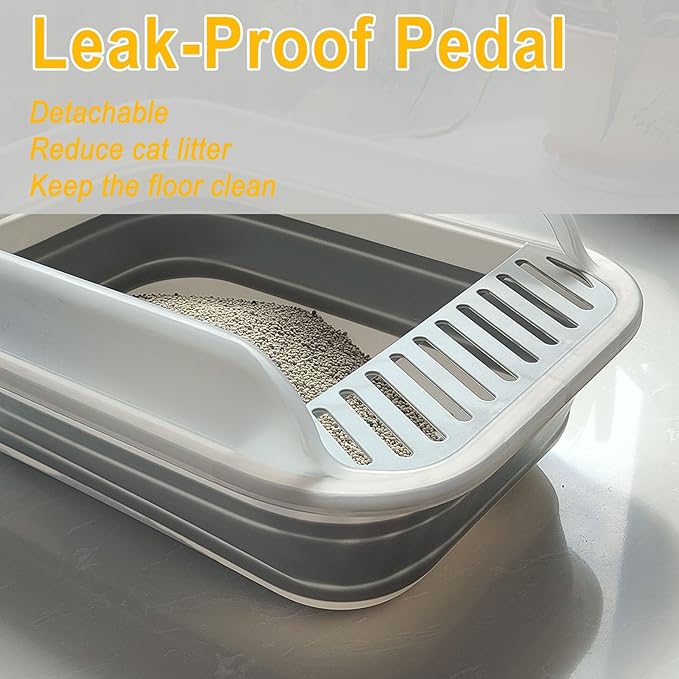 - Leak-proof pedal design: The hollow removable pedal on one side of the litter box can reduce the cat's PAWS to carry cat litter, keep the floor clean, and reduce the trouble of cleaning