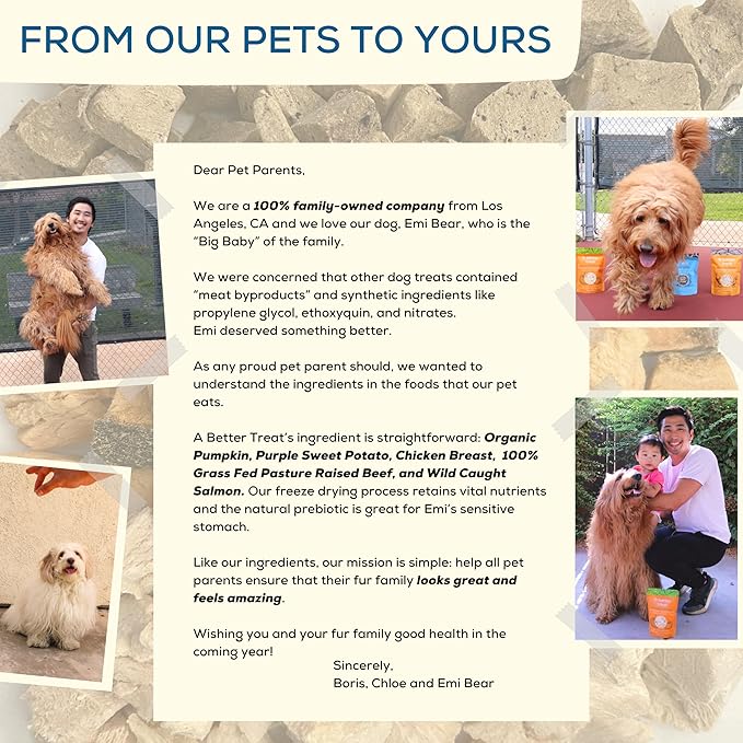 - A BETTER TREAT, YOU CAN TRUST – Our treats are organically farmed, sourced and made in the USA at our FDA regulated facility to ensure human grade quality. Freeze drying is shown to be the best way to preserve natural nutrients with over 61% more nutrients retained relative to dehydration or cooking. Our mission is to ensure only the freshest, healthiest, and best quality ingredients to make A BETTER TREAT.