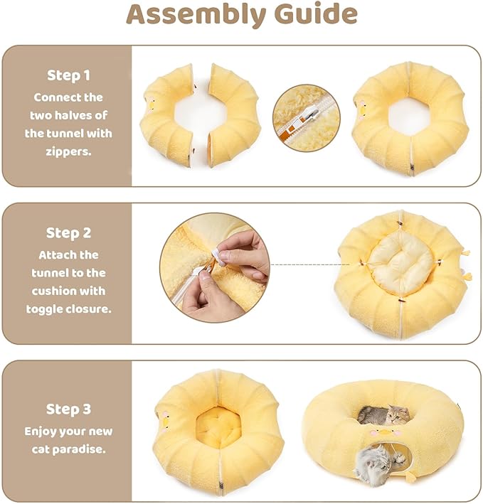 - Versatility: The innovative 2-in-1 cat tunnel bed allows your pet to play and rest at the same time. Designed with the excitement of a zippered play tunnel and the serenity of a cozy nap.
