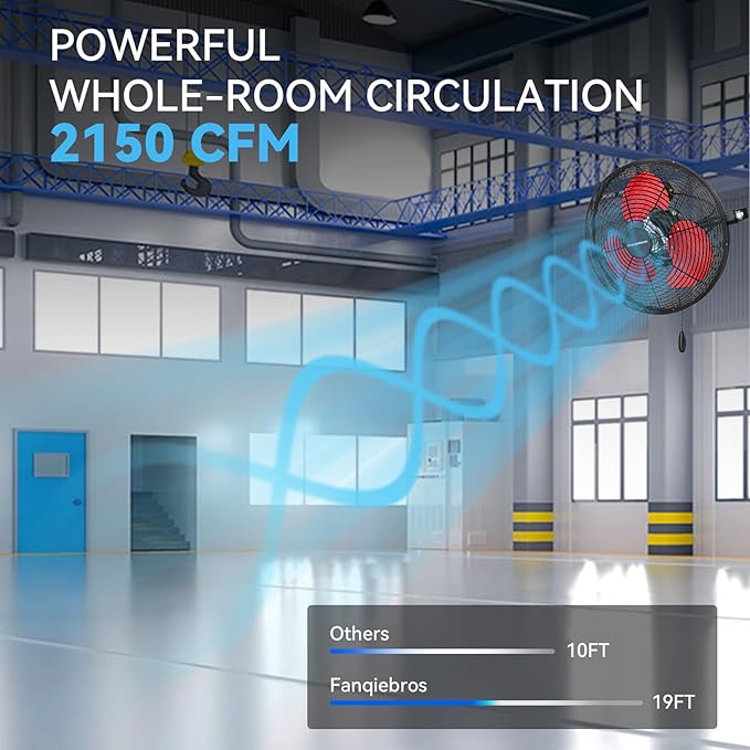 - ๐๐ข๐ ๐ก ๐๐๐ฅ๐จ๐๐ข๐ญ๐ฒ ๐๐ข๐ซ ๐ ๐ฅ๐จ๐ฐ - Equipped with 3 adjustable wind speeds, low (1700CFM), medium (2100CFM) and high (2500 CFM), this wall fan utilizes the raw power of the pure copper motor to provide hurricane-like airflow to meet your garages, shops, covered patios, or anywhere else you need