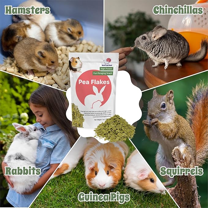 Snout and Shell Pea Flakes for Small Pets – High-Protein Treat for Guinea Pigs, Rabbits, Hamsters, Chinchillas & More – Fun Foraging Snack – 2 oz (28g)