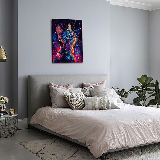 Cat Wall Art Canvas Fantastic Animal Wall Decor Prints Framed Painting Colorful Pictures Gifts Artwork for Bathroom Living Dining Kitchen 16"x24"
