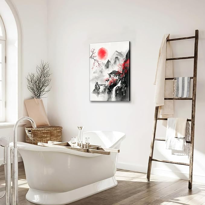 Japanese Wall Art Canvas Asian Nature Wall Decor Prints Framed Painting Mountain Landscape Pictures Gifts Artwork for Bathroom 16"x24"