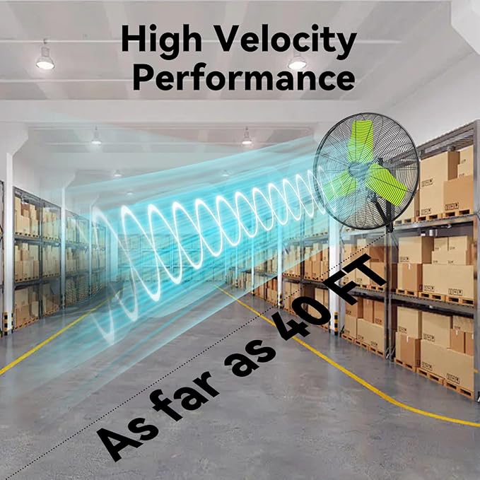 - Move Lots of Air: Fanniverse outdoor fan generates a maximum of 9500 CFM with a reach of around 40 ft. Perfect for outdoors, patios, garages, workshops, warehouse and factory.