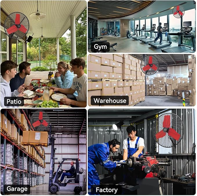 - Easy to Assemble: New frustration free packaging ensures all parts remain intact, making assembly straightforward with the included instructions. 24'' industrial wall fan features a 80-degree oscillating function and 17-degree tilting that allows the fan to cover a wide area.
