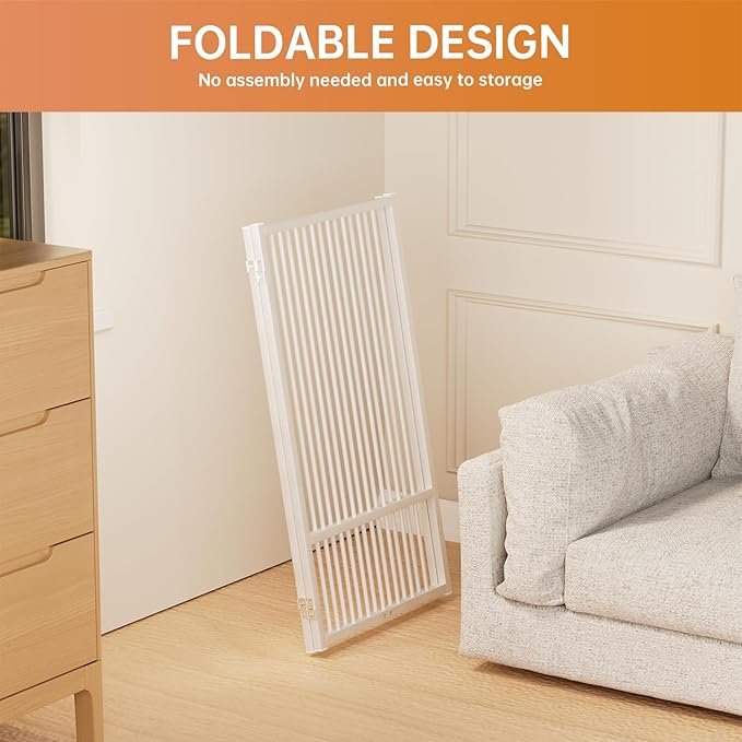 - [Versatile Sizes]: Our pet dog gate is available in 24-inch and 32-inch heights, perfect for puppies, small and medium dogs pets. Multi-choice of 2 panles, 4 panles and 6 panles, suitable for stairs, kitchens, bedroom doors, corridors and other indoor and outdoor forbidden areas.