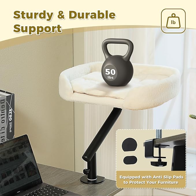 - Sturdy & Durable Support: With a reinforced metal support pole and an extra-strength clamp mechanism, this desk cat hammock offering superior stability compared to other products on the market. It can support up to 50 pounds, ensuring your cat's playtime is safe and secure.