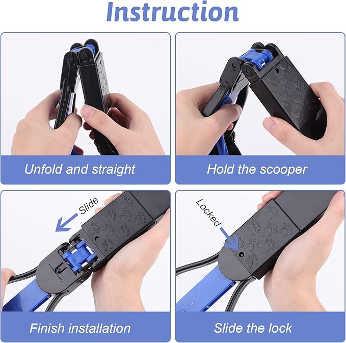 - 【Easy to Use & One Step】Only need to take ONE step to use our pooper scooper. Just sliding down the lock for quick and easy to use. Unlock and fold in half for very convenient to carry and storage. You won’t worry about complicated assembly like other tools. Folding and portable design ensures that you are very convenient to carry and use.