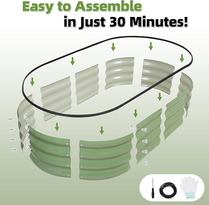 - Quick & Effortless Assembly: G GOOD GAIN Galvanized Metal Raised Garden Bed Kit includes tools, gloves, and clear instructions for short time setup. Optimized socket wrench-compatible design simplifies installation, saving time for immediate planting in gardens, lawns, or greenhouses