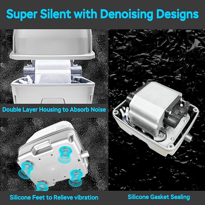 - QUIET OPERATION - Enjoy super quiet operation with our multi-layer noise control: Silicone vibration buffers, Precision-sealed air chamber, Double-walled housing. Ideal for noise-sensitive areas.