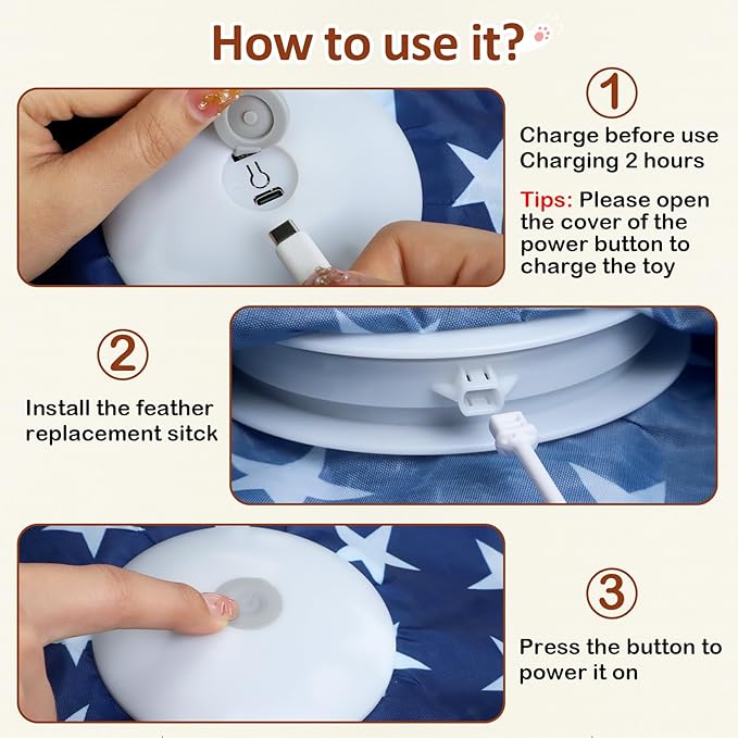 - Three speed modes - slow, fast, and interactiveโthis feather cat toy adapts to a variety of cat play style and suitable for both solo and group play. Hight support this cat toys for bored indoor adult cats