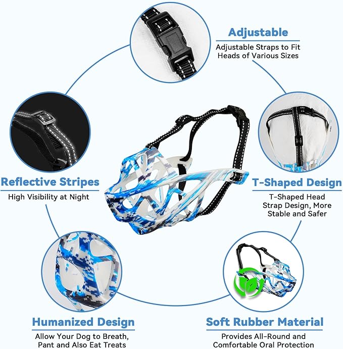 Dog Muzzle for Large Dogs, Breathable Basket Muzzles for Small, Medium and X-Large Aggressive Dog, Allows Panting Drinking, Suitable for Grooming Trimming Training (Camouflage Blue, XL)