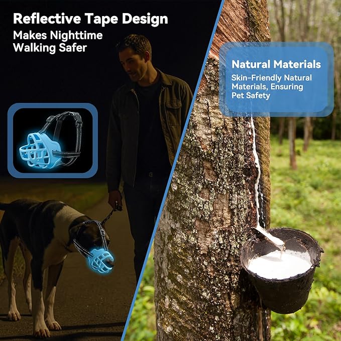 - Eco-Friendly Material for Safety and Durability: Our Dog Muzzle for Large Dogs is Crafted from Non-toxic, Environmentally Friendly TPR Silicone. This Lightweight yet Durable Material Is Odorless, Soft to the Touch, And Sturdy Enough to Resist Deformation, Ensuring Long-Lasting Use While Prioritizing Your Petโs Safety