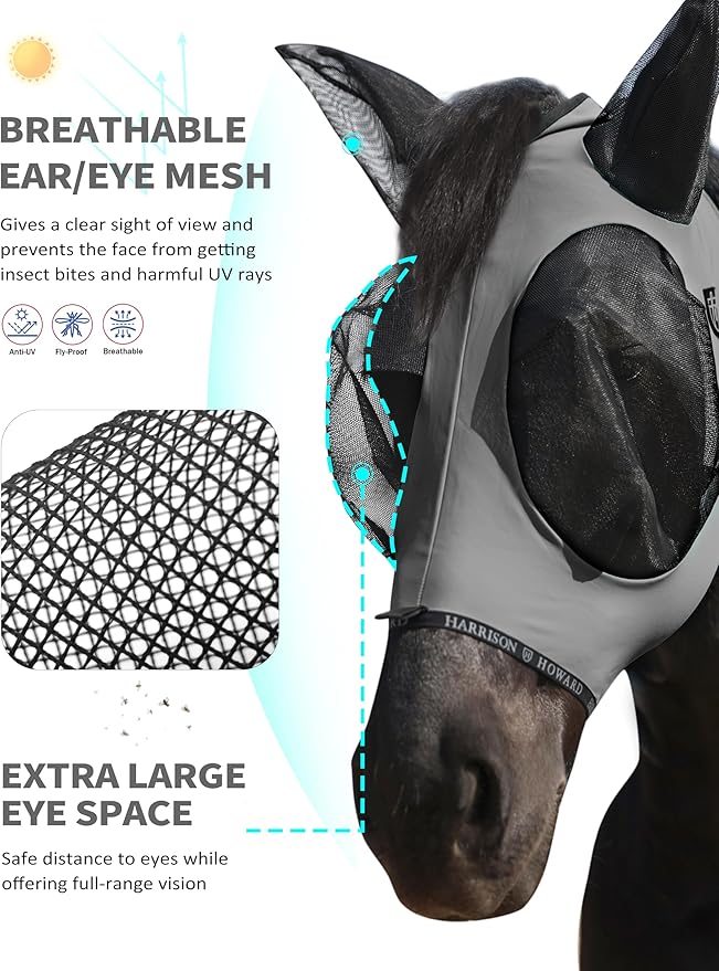 - High-Quality Fabrics: Made from high-quality nylon fabric, it is comfortable, breathable, and highly elastic, ensuring timely sweat wicking while being more durable. Additionally, the mesh features a specially densified design to maximally prevent intrusions from various insects, mosquitoes, flies, and small flying pests, enhancing your horse's comfort.