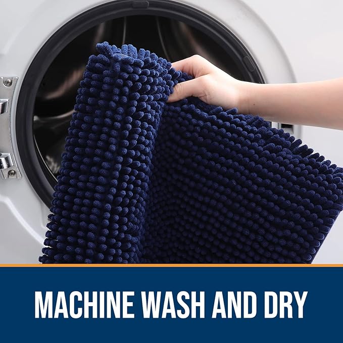 OLANLY Dog Door Mat Set 2-Piece 30x20, Absorbs Moisture and Dirt, Absorbent Non-Slip Washable Doormat, Quick Dry Chenille Mud Mat for Dogs, Entry Indoor Entryway Carpet for Inside Floor, Navy Blue