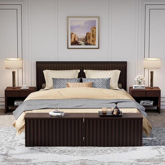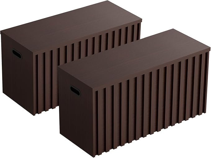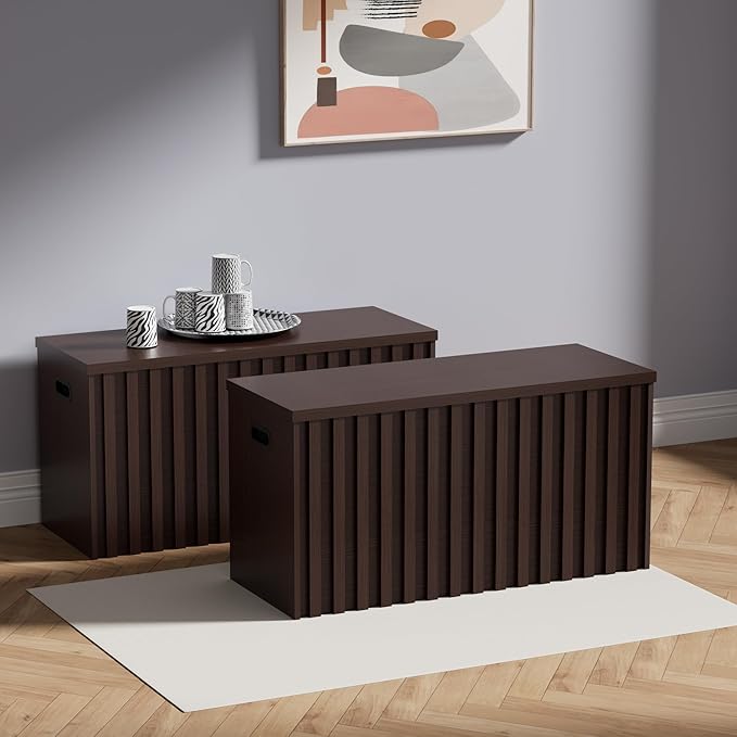 UEV Storage Bench Set of 2, 39.4" Wood Storage Trunk with 2 Safety Hinges, Sturdy Storage Chest, Fluted Wood Leg, Walnut