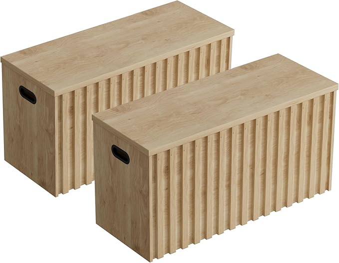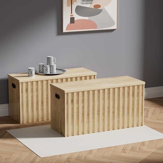 UEV Storage Bench Set of 2, 39.4" Wood Storage Trunk with 2 Safety Hinges, Sturdy Storage Chest, Fluted Storage Bench for Bedroom, Shoe Bench for Entryway, Living Room (Ivroy White)